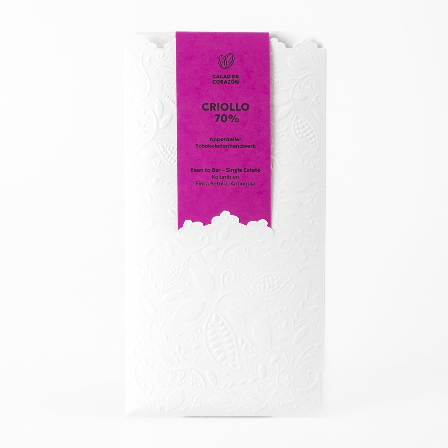 Cacao de Corazon steht für ehrlichen Genuss, vom Anbau bis zur Verpackung. In Appenzell wird erlesener Kakao in traditioneller Handarbeit zu Schokolade mit Charakter veredelt. Verarbeitet werden ausschliesslich hochwertige, natürliche und fair gehandelte Zutaten. Jede Tafel entsteht mit Leidenschaft, Präzision und einem feinen Gespür für Qualität und Herkunft. Die liebevoll gestaltete Verpackung macht sie zu einem kleinen Kunstwerk und rundet das Genusserlebnis stilvoll ab.