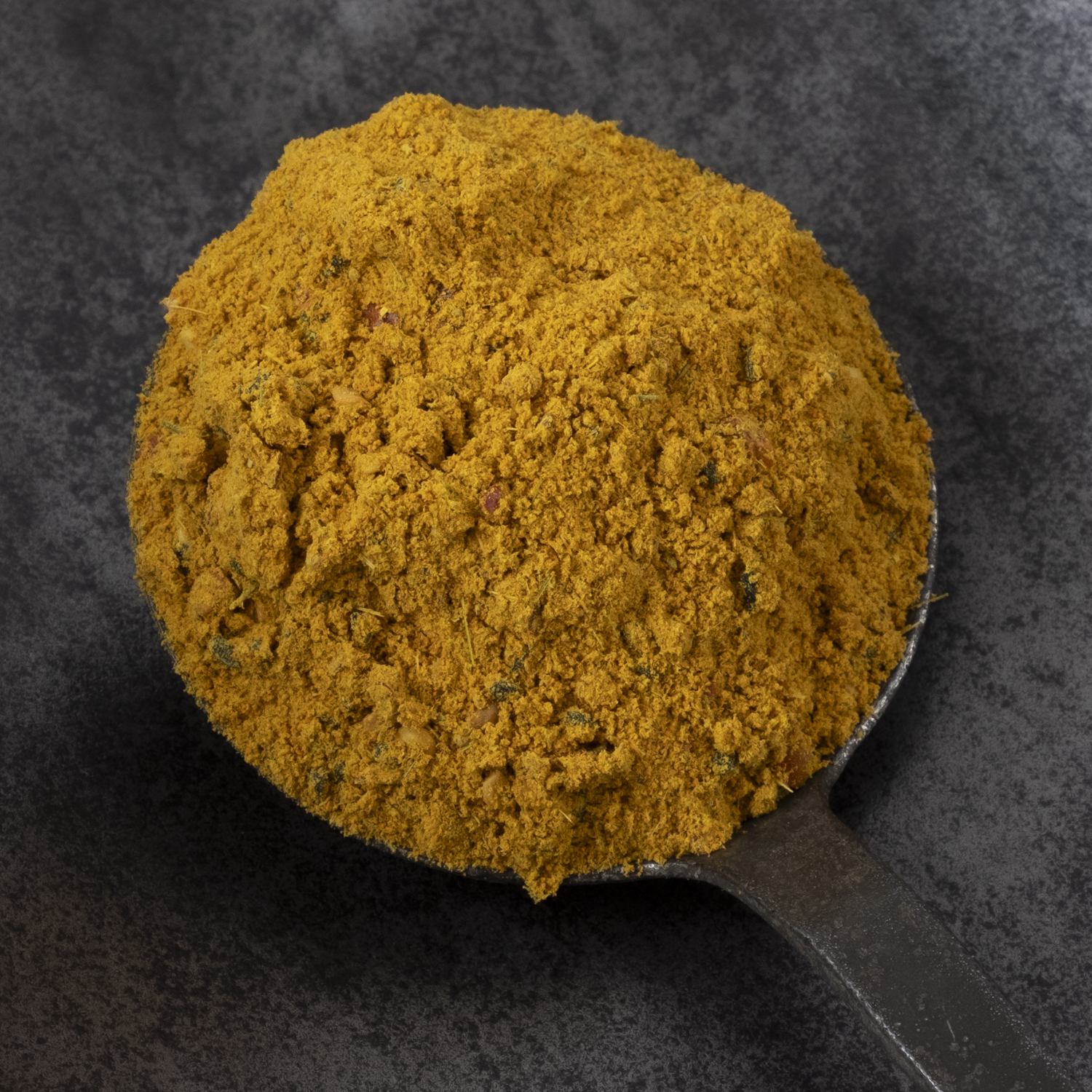 A wonderfully refreshing, spicy curry blend with chili, turmeric, cumin, coriander, black cumin, garlic, onion, fenugreek, cinnamon, and lemongrass. Made exclusively from organic ingredients, it pairs perfectly with tofu, vegetables, or poultry.