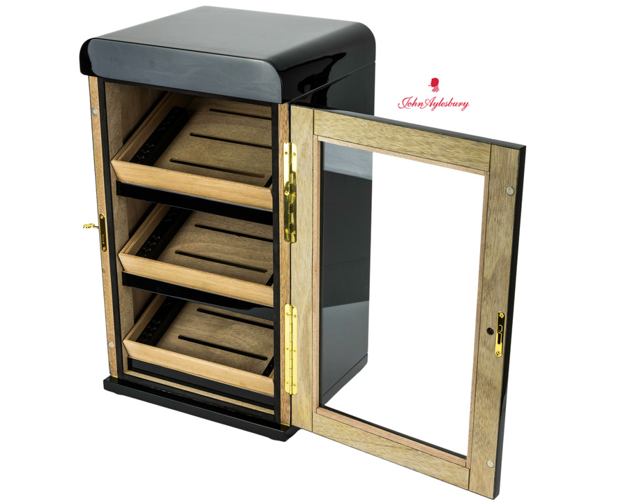 Humidor-Schrank schwarz glänzend, Glastüre