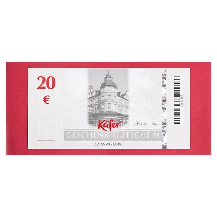 Wenn Sie mehrere 20€ Gutscheine bestellen und diese einzeln verschenken möchten, haben Sie die Möglichkeit Ihrer Bestellung im Warenkorb zusätzlich weitere rote Umschläge und weiße Käfer Kuverts hinzuzufügen. Wir bitten um Ihr Verständnis, dass wir bei der Bestellung mehrerer Gutscheine aus Nachhaltigkeitsgründen nicht automatisch jeden Gutschein mit Umschlag und Kuvert versenden.
