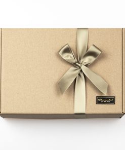 Ausgewählte Produkte zur Verfeinerung Ihrer Käseplatte, verpackt in einem braunen Geschenkkarton: