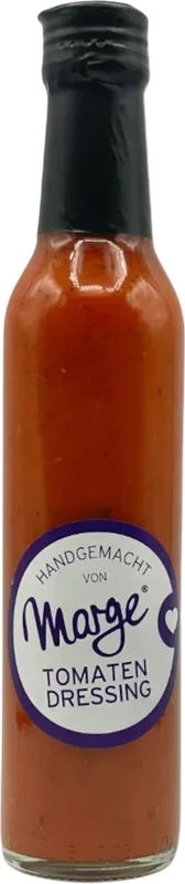 Alle Informationen zu Marge’s Tomatendressing MargesTomatendressing ist eine fruchtig-tomatige Salatsoße, aus getrockneten Tomaten, Öl, Essig, Kräutern und Gewürzen. Es verleiht jedem Salat eine fruchtige und würzige Note und ist eine köstliche Alternative zu schweren Sahne- oder Mayonnaise-Dressings.Unser Tomatendressing passt besonders gut zu grünen Salaten oder Nudelsalaten. Man kann es auch als Marinade für gegrilltes Gemüse oder Fleisch verwenden. Gestern haben wir unser Tomatendressing als Dip zu Tortilla-Chips gesnackt. Vielleicht habt Ihr ja noch eine andere Idee.