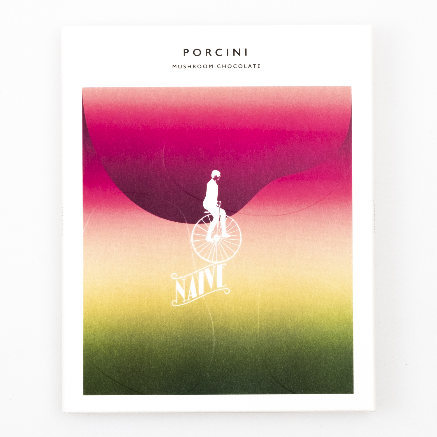 The scent and taste of noble porcini nestles round and surprisingly harmonious around the delicate milk chocolate. Let the chocolate melt on your tongue and the wonderful aromas will gradually unfold.