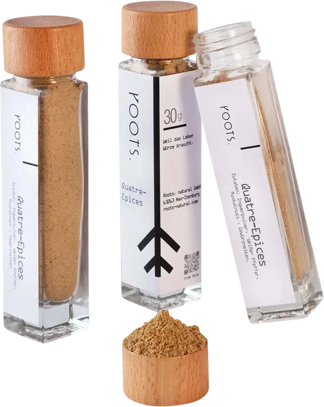 Alle Informationen zu Quatre Epices Gewürzmischung In dieser französischen Gewürzmischung spiegelt sich die Ausgewogenheit in den milden, leicht süßen und herben Noten. Quatre Épices wird traditionell für Fleischgerichte wie Schwein, Wild oder Pasteten verwendet. Außerdem wird mit dieser Mischung gerne Fleisch eingelegt und mariniert.Zugleich passt diese ausgewogene Gewürzmischung hervorragend zur veganen Küche. So lieben Kürbis oder Aubergine die Aromen. Aber auch Gebäck lässt sich ausgezeichnet mit Quatre Épices verfeinern.Quatre Epices enthält diese vier Gewürze:IngwerWeißer PfefferMuskatGewürznelken