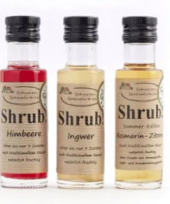 Unsere 3 Shrub-Lieblinge für natürlich erfrischende Limonaden – einfach mit spritzigem, gekühltem Mineralwasser aufgießen und fertig ist das leckere und trotzdem kalorienarme Erfrischungsgetränk. Geschmacklich steht dabei immer die jeweilige Frucht klar im Vordergrund, im Abgang bemerkt man eine dezente Essignote, die allerdings nicht störend ist sondern wunderbar harmoniert. Der Bio-Apfelessig hat außerdem eine positive Wirkung auf die Gesundheit.