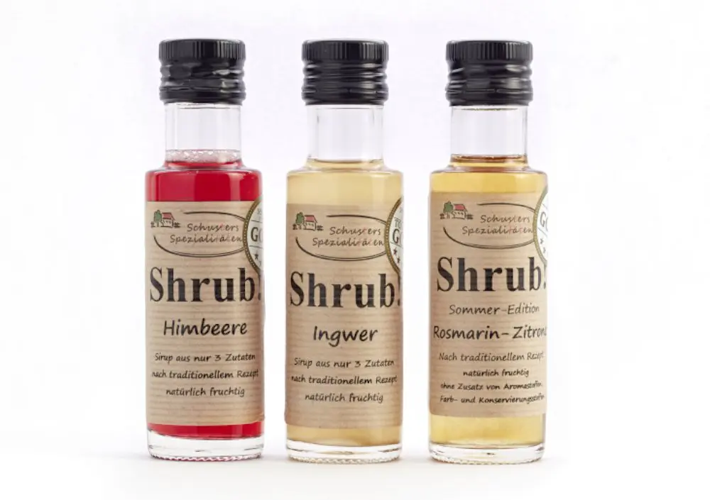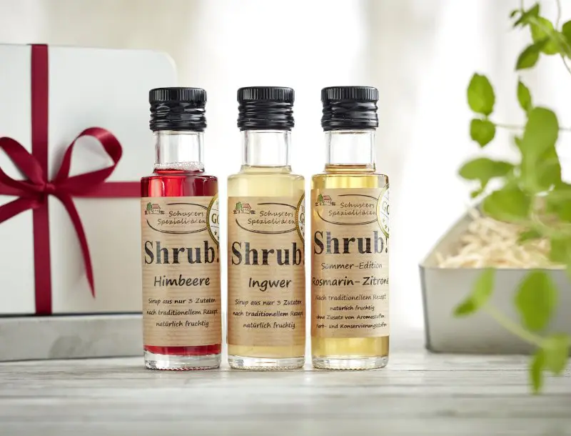 Shrub! Himbeere ist der absolute Klassiker unter den Limonaden-Shrubs. Schon vor 200 Jahren wurde „Raspberry Shrub“ in der Familie hergestellt und mit Wasser verdünnt getrunken. So wie damals verzichten wir auch heute auf jegliche Zusätze und sind stolz darauf, dass in unserem Shrub der Geschmack zu 100 Prozent aus der Frucht stammt.