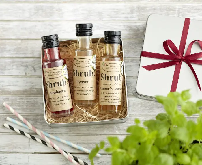 In einer Shrub! Geschenkbox (15x15x5,4 cm) sind folgende Materialien enthalten: